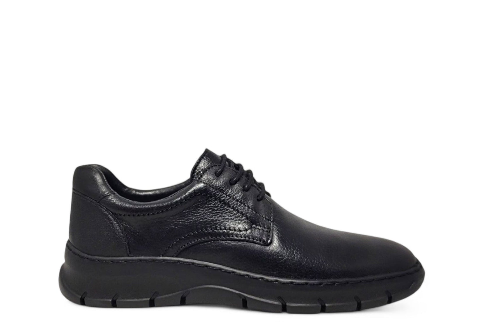 Allacciata in pelle nera morbida con suola in gomma extralight e plantare estraibile