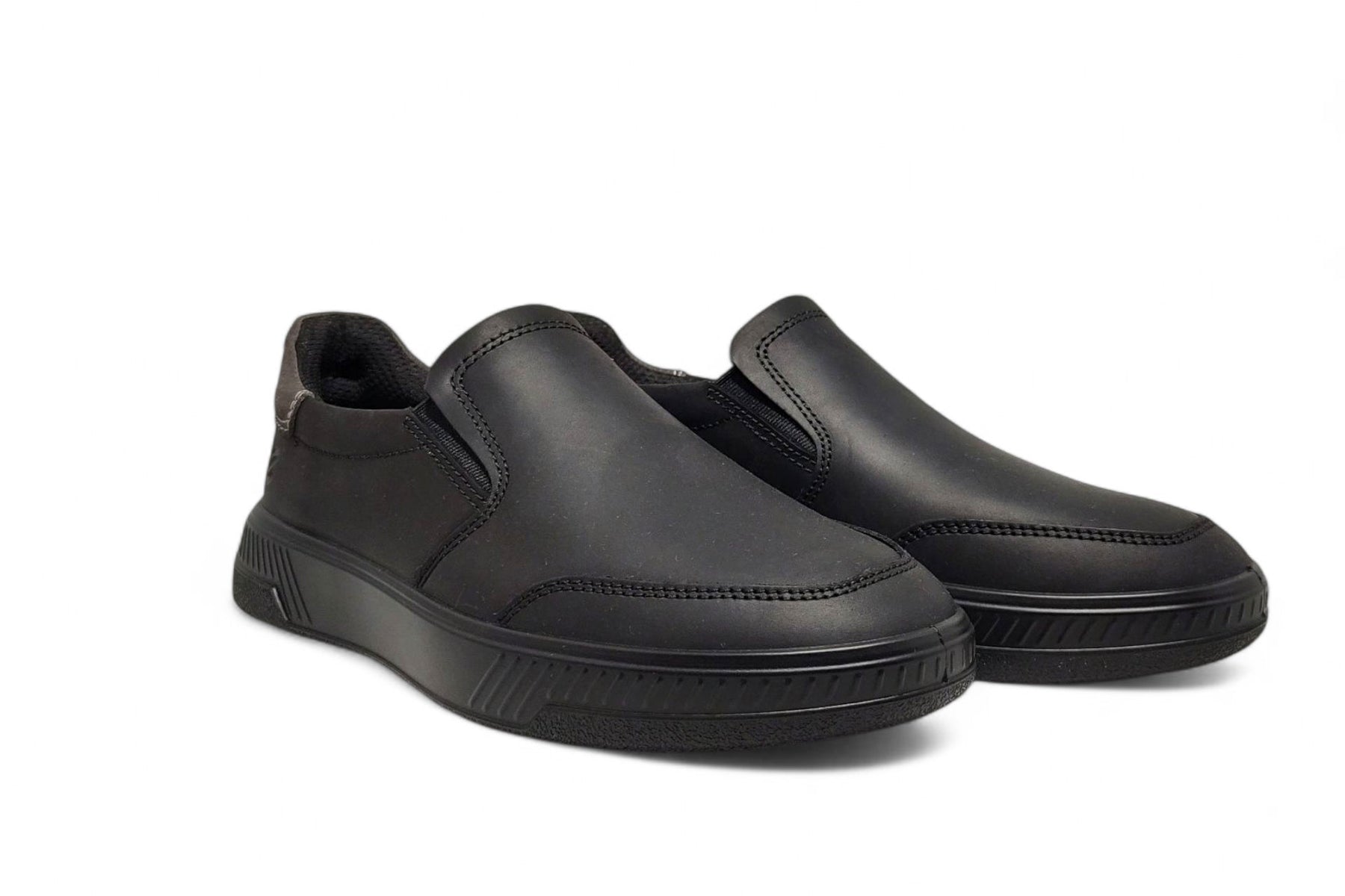 Mocassino in nabuk nero con suola in gomma e plantare estraibile