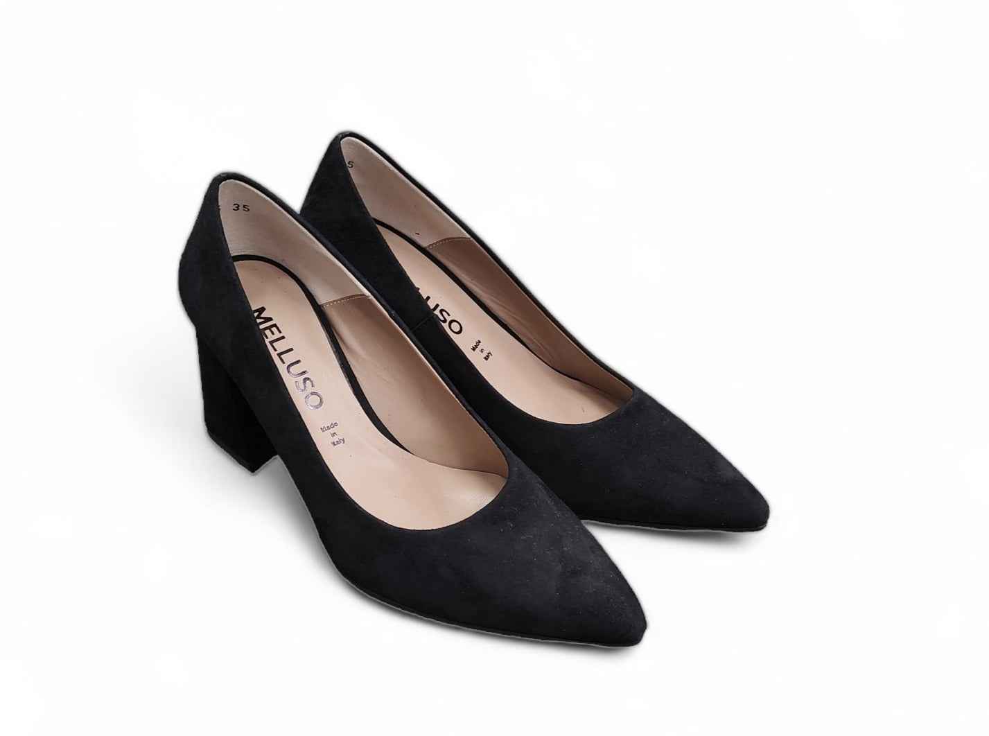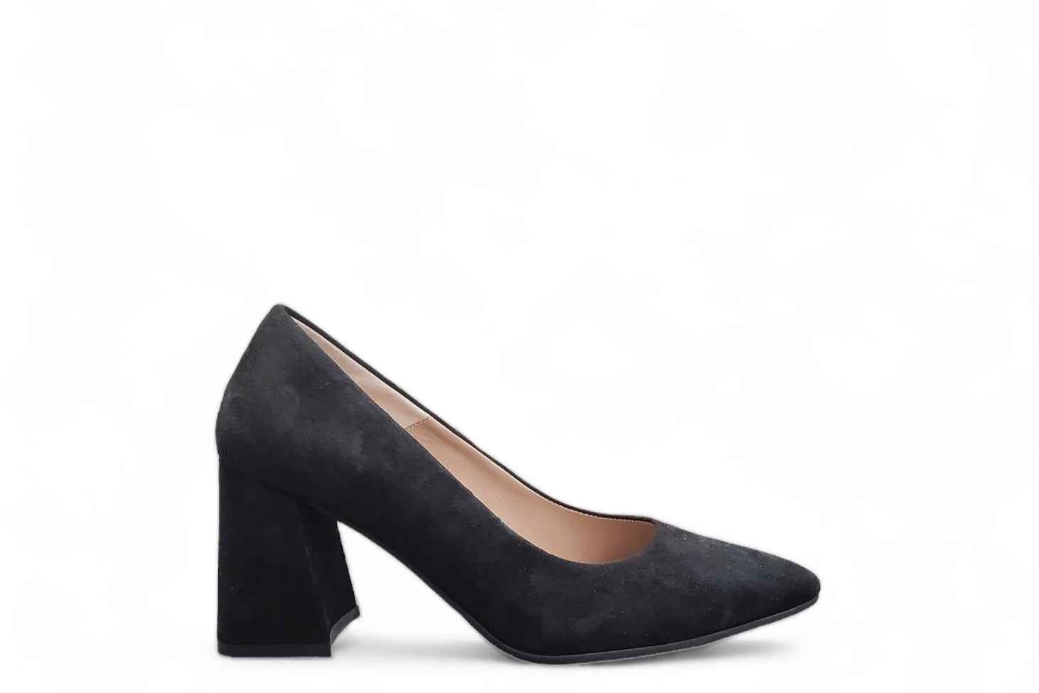 Decollete in camoscio nero con tacco 8 cm e fondo gomma