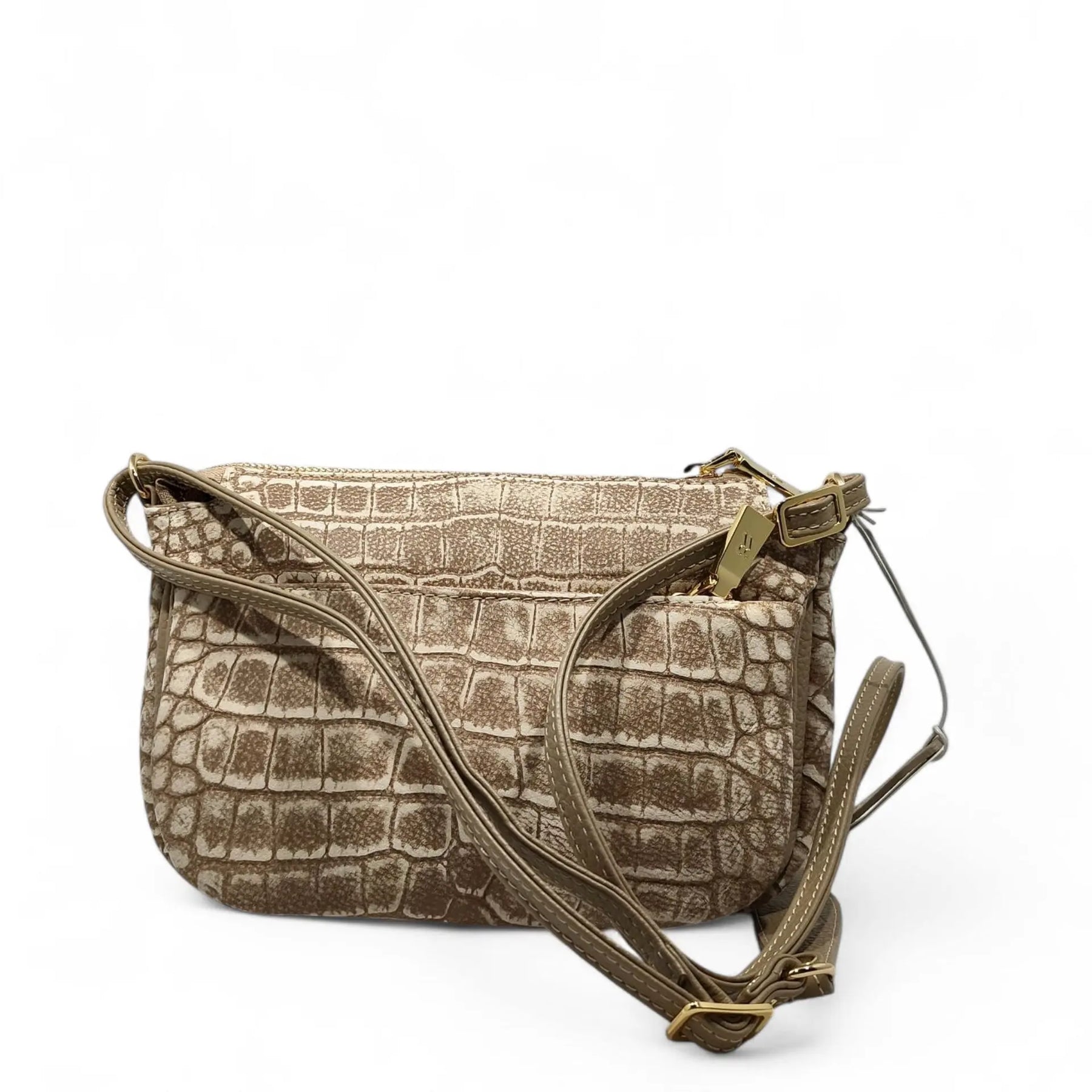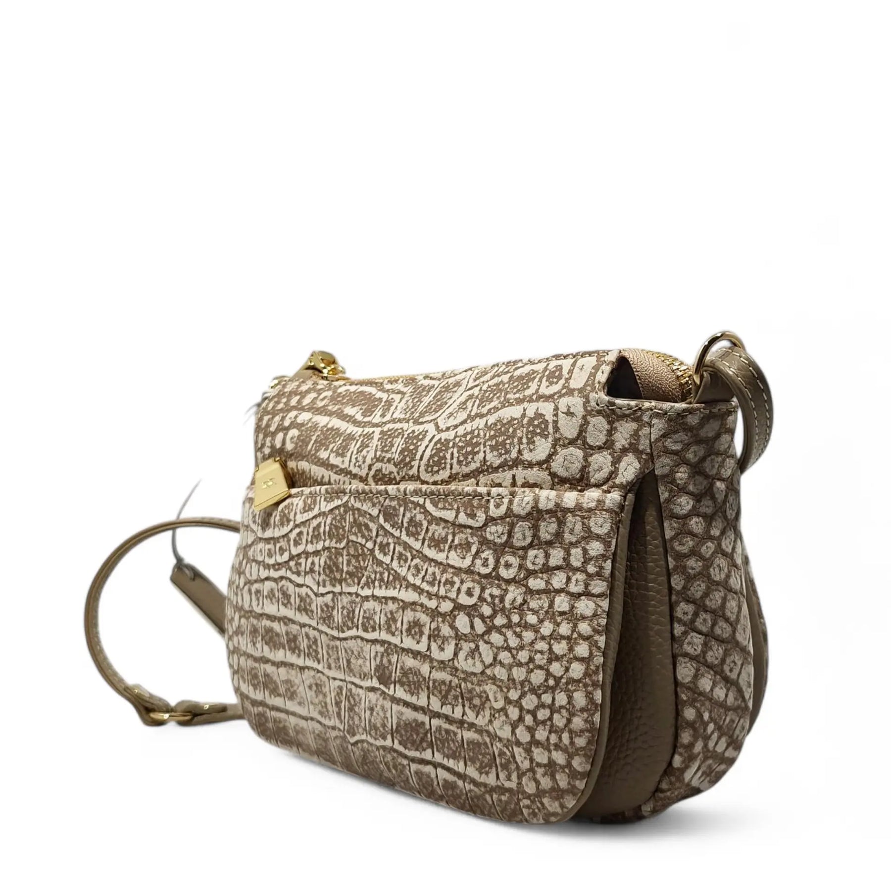 Borsetta in nabuk stampato cocco con tracolla regolabile e chiusura con cerniera. Comoda per viaggiare