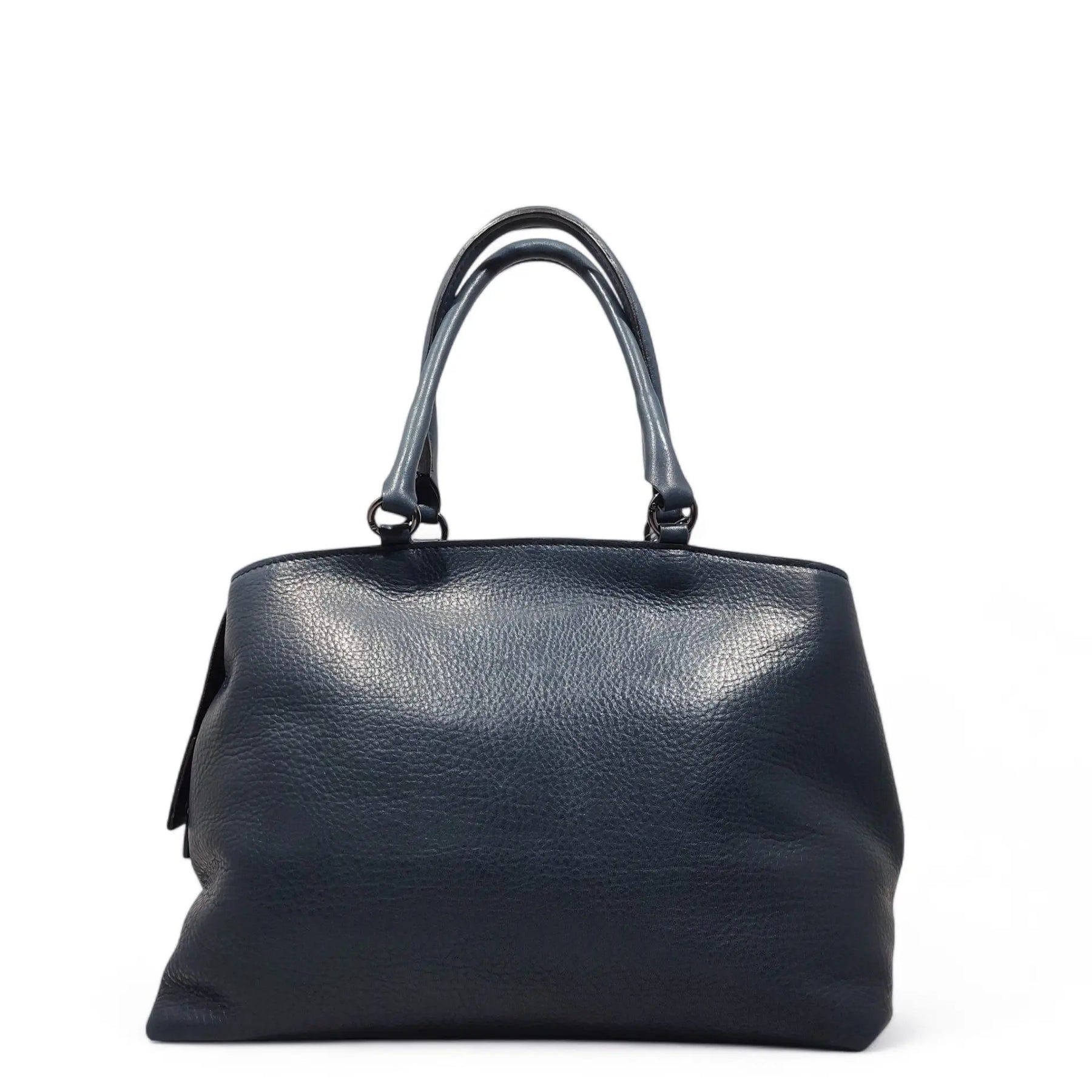 Borsa in pelle blu con doppio manico e tracolla regolabile