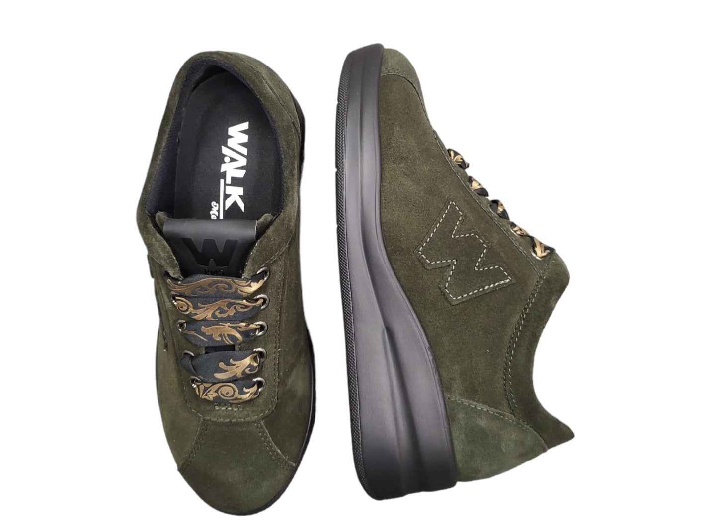 Sneakers linea Walk in camoscio verde con lacci colorati