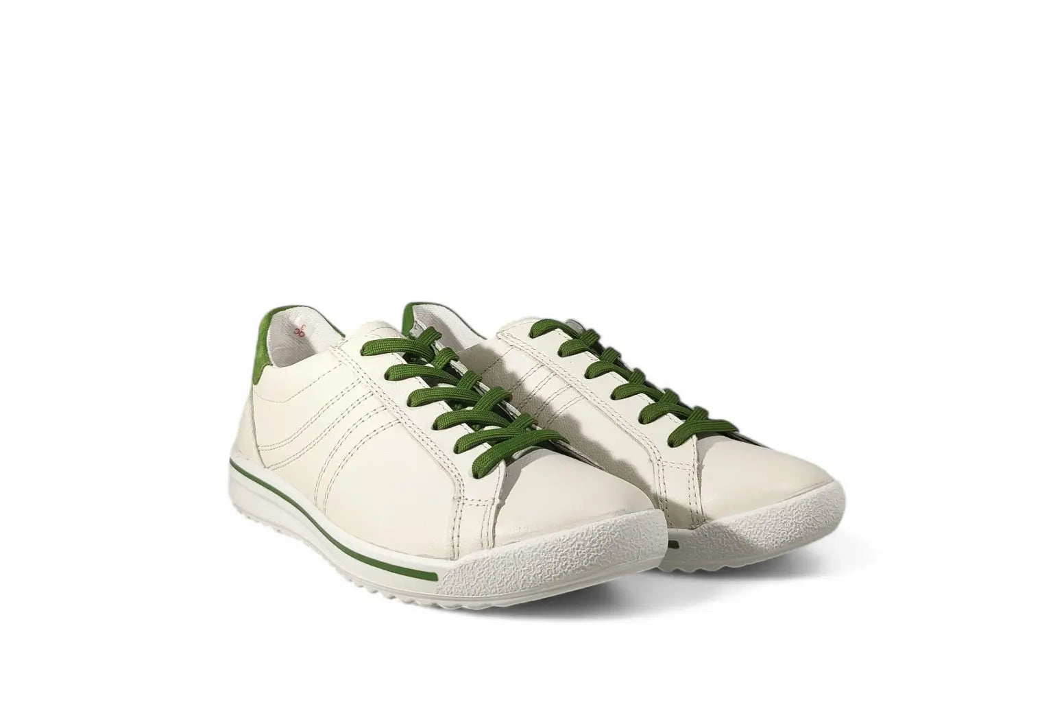 Sneakers Legero in pelle color latte con lacci verdi.