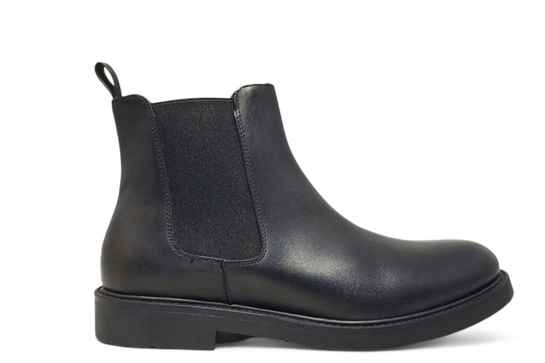 stivaletto in pelle nera con doppio elastico e suola in gomma